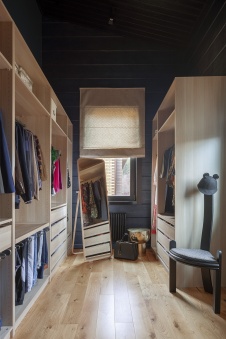 Фото интерьера гардеробной деревянного дома в стиле фьюжн