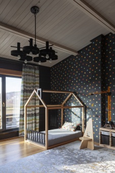 Фото интерьера детской деревянного дома в стиле фьюжн