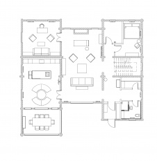 Планировка 1 этажа 2-х этажного дома из бруса со вторым светом в гостиной.