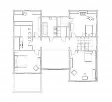 Планировка 2 этажа 2-х этажного дома из бруса со вторым светом в гостиной.