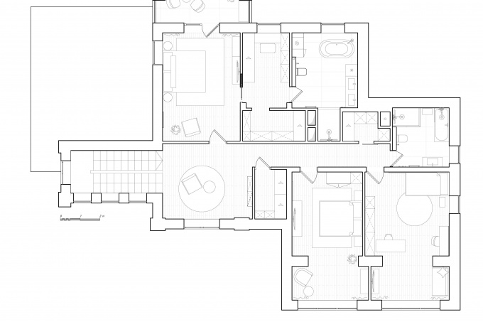 Они сумели кардинально переработать первоначальный архитектурный проект, интегрировать новые задачи, полностью сохранив исходную структуру дома. Но главная удача – создание живого пространства, которое подчинено не декору, а смыслу и содержанию.