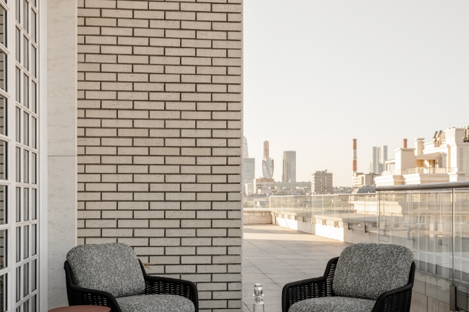 Особенность фасадов здания – исторические архитектурные приемы: арочные окна, крупный руст и «алмазная огранка» декоративных деталей. Именно они вдохновили автора на создание интерьера с необычной пластикой, деликатными рельефными орнаментами и элементами неоклассики.