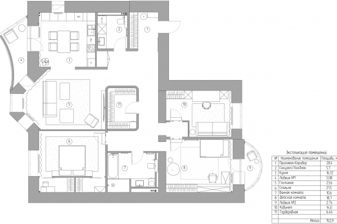 Молодая семейная – постоянные клиенты бюро Olga Kushnareva-Leone, с которыми они знакомы около 10 лет и успели совместно реализовать загородный дом и квартиру. За это время у заказчиков появилось трое детей, да и сами они сменили приоритеты и взгляды на дизайн. Свою новую квартиру в Замоскворечье они видели легкой, изящной и современной. Без тяжеловесных элементов старомосковской классики.