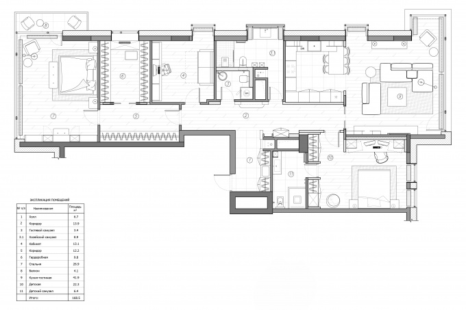 Заказчик живет на два города: работает в Москве, а отдыхает с семьей в Санкт-Петербурге. Он поставил задачу создать классическую, но нестандартную квартиру: живую, воздушную с современным прочтением традиционных решений. Важными критериями были легкость, воздушность пространства и наличие ярких акцентных элементов. Дизайнер соединила классические принципы и современную эстетику, предложив свое прочтение петербургской классики. Получился живой и воздушный интерьер, с яркими деталями и скрытыми смыслами.