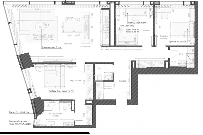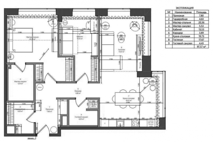Здесь необходимо учитывать и наличие смежных ванной и гардеробной.