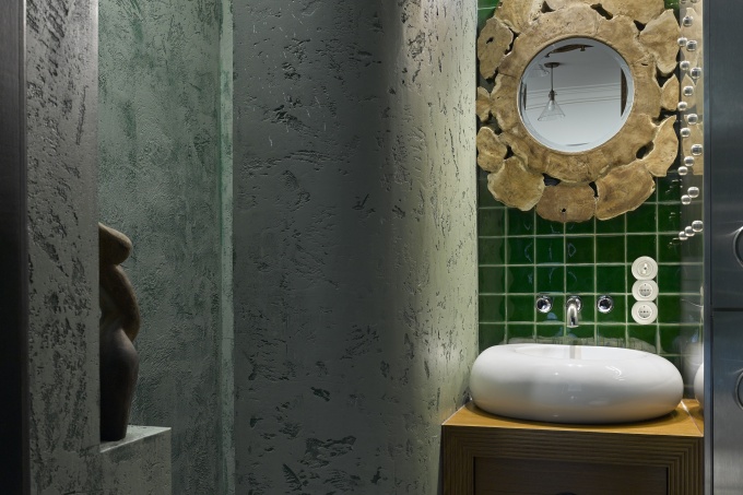«Заказчики очень любят лакированное дерево, полированный камень, декоративные раскладки шпона, - отмечает автор проекта. – Однако задачи выдержать чистоту стиля совсем не стояло, в процессе работы мы добавляли в интерьер предметы, которые нравились. В итоге получился необычный интерьер, очень индивидуальный и яркий». Еще одной целью стала разработка сложного инженерного проекта с высоким уровнем технического оснащения, которая увеличила сроки сдачи проекта (ремонт длился более двух лет), но обеспечила высочайший уровень комфорта. В квартире установлена инновационная система кондиционирования (чиллер-фанкойл), спроектирована система "Умный дом" с функциями управления светом, отоплением, шторами, оборудован домашний кинотеатр с медиатекой, а также разработана противопожарная и охранная сигнализации. Для всех этих систем спроектирована отдельная серверная комната.