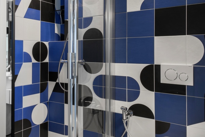 Ключом к поиску образа стали 3-х метровые стеклянные перегородки, которые заменили глухие стены и сохранили воздух и свет. Простые формы, чистые линии, крупный масштаб отделочных материалов и большие цветовые заливки позволили превратить компактную квартиру в максимально функциональное городское жилье.