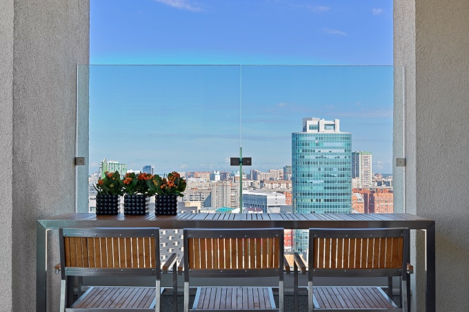 И выбрали чрезвычайно удачный вариант – квартиру с открытой террасой, площадью 60 кв. м с видом на Москва-Сити, где можно любоваться закатами и общением с друзьями в формате outdoor.