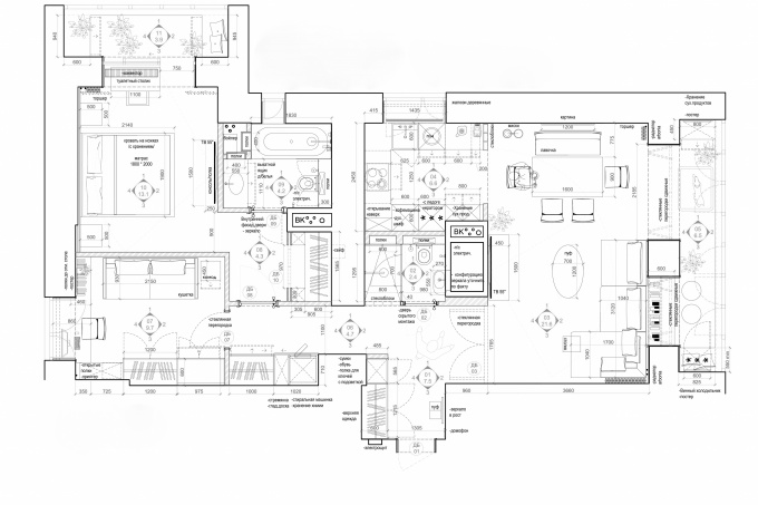 «Основная сложность заключалась в том, что комнаты уже были сформированы, розетки и выключатели находились своих местах, и мы не могли корректировать эти моменты… Поэтому тут мы работали больше как художники и занимались чистым креативом, не отвлекаясь на инженерные особенности. Это был 100% дизайн без лишних отвлекающих факторов, и мы получили колоссальное удовольствие от процесса», - отмечают авторы проекта.