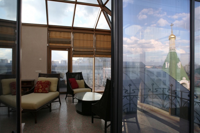 Автору следовало создать выразительный образ интерьера, вдохнуть в него жизнь. Поскольку квартира с выходом на эксплуатируемую кровлю находится в доме постройки начала ХХ века, то в качестве основной декоративной линии дизайнер предложила московский ар-нуво.