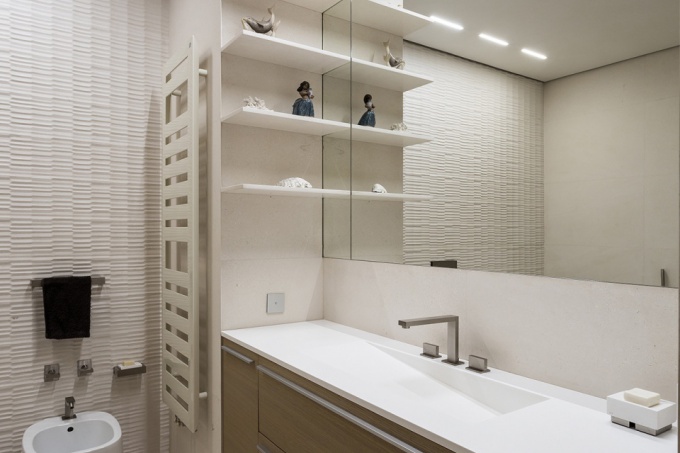 Выбранные материалы должны быть долговечными, не маркими и простыми в эксплуатации, поэтому не желательно использовать здесь светлые тона и обычную покраску. Лучше использовать мрамор и древесину влагоустойчивых пород.