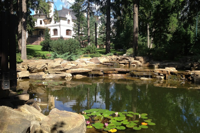 В классической усадьбе ландшафтный архитектор Владимир Жилинский спроектировал парк с парадным настроением, соответствующим помпезному архитектурному ансамблю. С помощью средств ландшафтного дизайна он выделил парадную часть, придав ей черты регулярного французского парка, который прекрасно поддерживает архитектуру главного дома, выстроенного из светлого камня в традициях замков Луары. Обширный участок за домом выполнен в стиле пейзажных парков и развивает природную тему с водоемом, беседкой и лесной зоной.