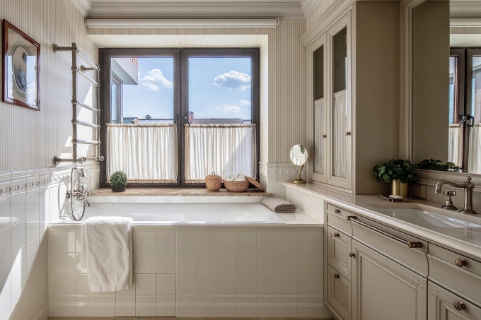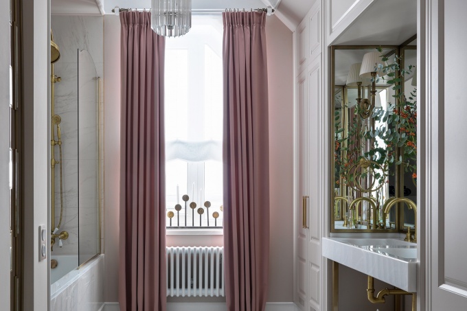 На стилистику интерьера во многом повлияло месторасположение, соседство с дворцовыми ансамблями семьи Романовых, а также любовь заказчицы к элегантному классическому стилю.