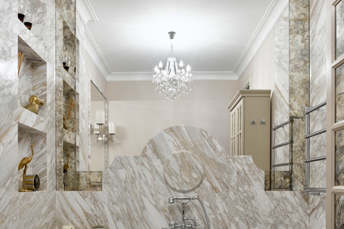 Дизайнер Дарья Сусекова создала парадный интерьер с историческим подтекстом: интересный, подробный, филигранно собранный. В нем гармонично соединяются элементы разных традиционных стилей: классики, барокко, шинуазри с современными дизайнерскими тенденциями. «Заказчица родом из Санкт-Петербурга, она много времени проводит в заграничных командировках. Париж, Милан, Санкт-Петербург – вот ее любимые города, классический антураж в них – норма жизни.