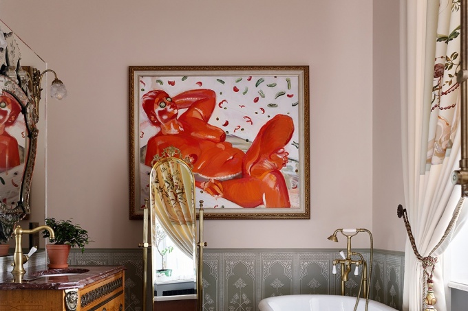 Не так давно часть этой исторической квартиры досталась коллекционеру Анне Амосовой. Перед декораторами она поставила задачу сохранить чудом уцелевшее историческое наследие, но сделать интерьер живым и обитаемым. В итоге получился многоплановый интерьер с элементами уникальной исторической отделки в духе дворцовой классики (ее авторы проекта деликатно отреставрировали), редким антиквариатом, актуальным искусством и предметами современного коллекционного дизайна. Очень плотный, насыщенный и отчасти сам существующий как эклектичный, впечатляющий арт-объект.