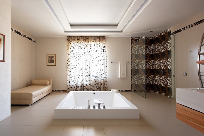 Этому служит высокий каменный фундамент, широкие террасы, которые зрительно увеличивают объем построек и разноуровневая скатная кровля. Она покрыта цементно-песчаной черепицей двух оттенков, что придает архитектуре этническое звучание. Кроме того, в отделке фасадов обоих домов использовалась тонированная доска и искусственный камень, имитирующий песчаник с грубо обработанной поверхностью.