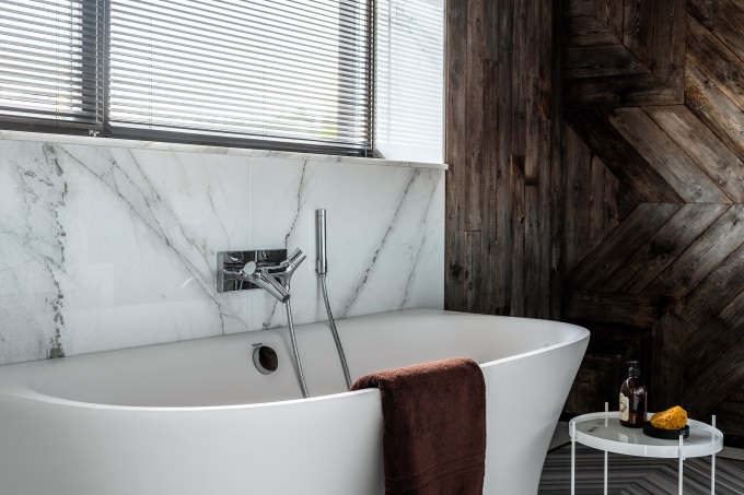 Сложный рисунок выкладывали по месту, чтобы не только правильно обрамить все углы и проемы, но и задать фасадам интересный ритм, в котором читаются палладианские традиции. Для разработки интерьеров были приглашены архитекторы Мария и Никита Бахаревы, которые развили тему деревянного зодчества и превратили дом в эпатажное пространство для произведений искусства.