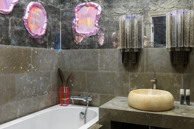 Создать интерьер без правил, с одной стороны, мечта любого дизайнера, с другой – задача очень непростая. «Важно было найти баланс, чтобы яркий и многосложный дизайн не спорил с сильным по цвету и эмоциям искусством. В итоге решили работать широкими заливками и на контрастах: светлых нейтральных плоскостей и мощных акцентов в виде пестрого натурального камня, винтажной амбарной доски, кирпича ручной работы, разноцветной мебели», - рассказывает автор проекта.