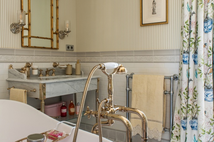 В интерьере трехэтажного дома в Подмосковье дизайнер Мария Глинская соединила эстетику старинной подмосковной дачи со стилем прованс. По ее словам, сама атмосфера этого стародачного места, затерявшегося среди высоких деревьев, подтолкнула к созданию дома с историей, где часть стен покрашены по кирпичу, а современная мебель выглядит, как старинная.