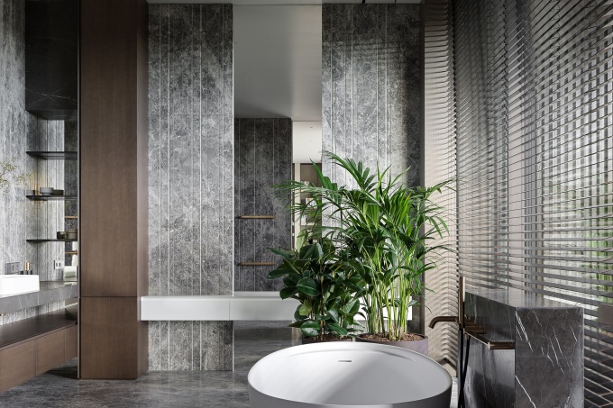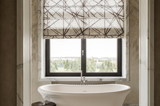 «Я не присутствовала на первой встрече, мне передали только запись разговора, - рассказывает архитектор. – В ней заказчица озвучила основные пожелания: связь интерьера с экстерьером, индивидуальная вневременная стилистка с отсылками к ар-деко, авторские, но без экстравагантности решения, нейтральная цветовая палитра с нюансной деталировкой и каменный пол в помещениях первого этажа. Сначала меня смущал камень, так как почти любой мрамор имеет активный рисунок и берет на себя много внимания. Но мне удалось найти идеальный вариант – юрский мрамор, у него абсолютно нейтральный цвет и сложная текстура с включением окаменелостей». В итоге именно камень задал основную линию: мягкие бежево-песочные оттенки и тактильные фактуры объединили весь интерьер. Благодаря такому решению все 1300 кв. м воспринимаются как единое цельное пространство, очень комфортное для проживания. Нейтральный цвет хорошо подчеркивает архитектуру и пластику стен и оттеняет цветовые акценты, раритетный винтаж и искусство.