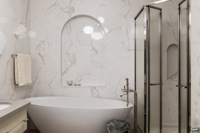 Светлая и воздушная неоклассика в современной высотке – таков лейтмотив интерьера, спроектированного дизайнером Аленой Александровой в новом петербургском ЖК Neva House.