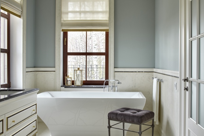Дизайнер предложила пойти по пути неоклассической стилистики с атмосферой благородной старины, материалами с патиной времени и подлинными винтажными и антикварными предметами.