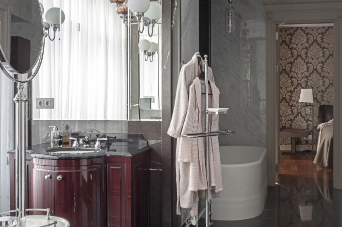 Поскольку квартира находится в историческом районе Москвы, близи Кремля и бульваров, то изначально они хотели получить классический интерьер. Однако после совместной с дизайнерами поездки на миланскую мебельную выставку, решили добавить в интерьер современную дизайнерскую мебель. В итоге получился микс из классики и современности, но, если обыкновенно дизайнеры используют современный фон и классические предметы, то авторы этого проекта пошли другим путем и на классическом фоне разыграли современный сценарий.