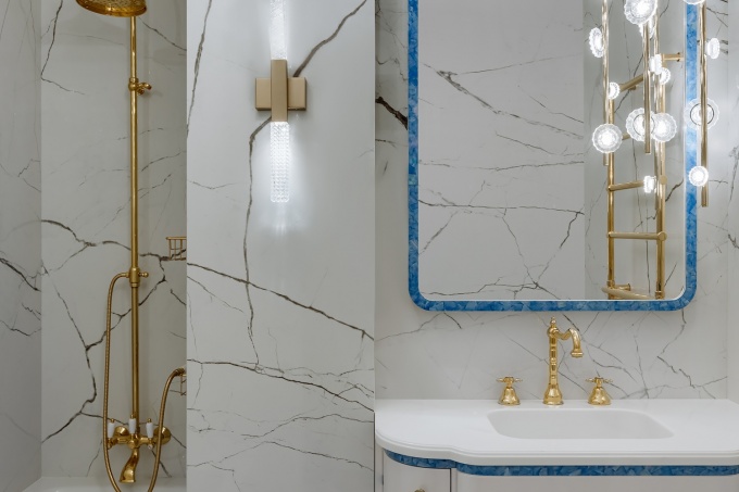Ключом к декоративному образу интерьера стала стилистика ар-деко, которая пронизывает все творчество дизайнера. «Этот стиль – воплощение праздника и способ отдохнуть от реальности. Он многоликий, очень смелый и объединяет в себе любовь к искусству, строгую геометрию форм, экзотические материалы и шик. Безусловно, это стиль ярких и сильных людей, и он очень подходит моим заказчикам», - отмечает автор проекта.