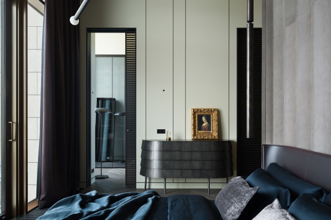В этом эстетском интерьере с активными контрастами и выразительными фактурами ощущается строгость и основательность. «Заказчик хотел персонализированное пространство, отражающее его личность и жизненные вкусы, максимально просторный и наполненный оригинальными авторскими решениями», - рассказывает дизайнер Анастасия Резникова. При работе над проектом она соединила дизайн в духе эталонных пентхаусов на Манхэттене 1950-60-х годов («золотой эпохи» для этой типологии недвижимости), монохромную палитру в стиле абстрактных работ Джеймса Поллока и монолитную весомость старых классических интерьеров, воплощенную в суперсовременных материалах.
