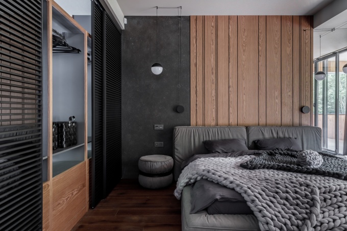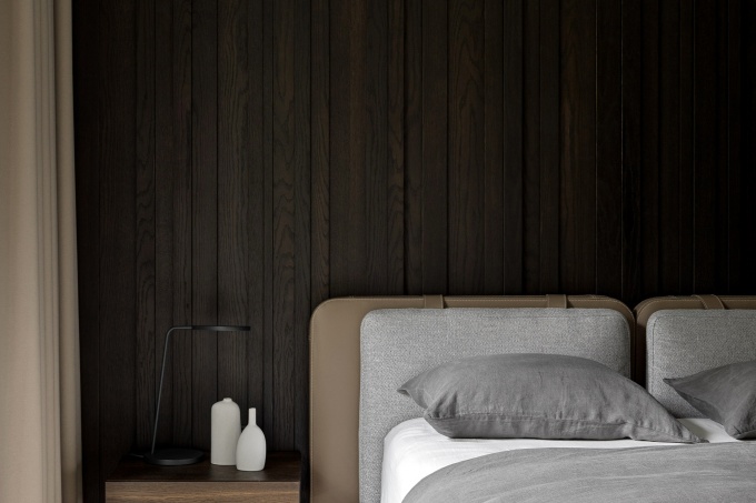 Заказчики не любят белые интерьеры и обратились с пожеланием создать квартиру в плотной коричнево-черной палитре. Благодаря панорамному остеклению и видам на лес монохромный интерьер не выглядит чрезмерно брутальным, от сезона к сезону он наполняется разнообразными природными красками.