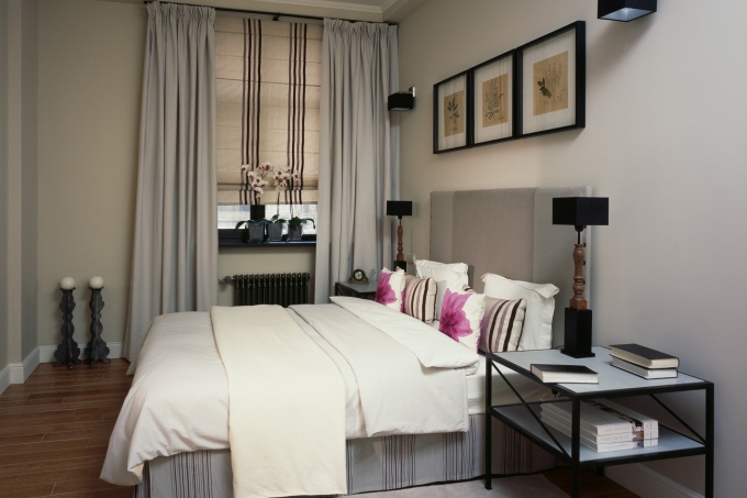 Главное, что отличает спальню – особый уют. Шторы, обои, свет – все это очень важно. Здесь вполне подойдет контурная, «затухающая» подсветка. Следует следить за устройством света, расположенного за спинкой кровати, он не должен мешать спящему, когда другой читает.