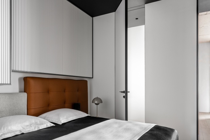 Функционал всех зон должен был быть полноценным, но без ущерба общей эстетике. Стилистически заказчикам нравились многоплановые интерьеры с интересными перспективами, мобильными решениями, чистыми ровными плоскостями, бетоном и монохромом. Поэтому обыграть планировку архитекторы предложили с помощью масштабных объектов с активной геометрией, деконструктивистских приемов и нейтрального фонового дизайна.