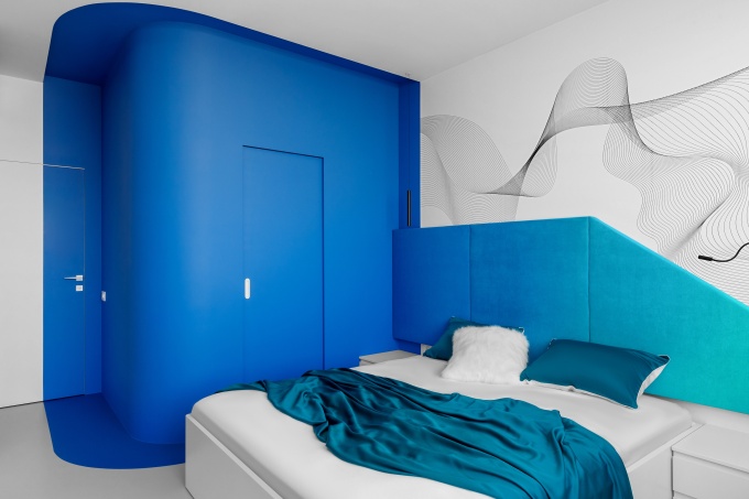 Архитектор Рустэм Уразметов, руководитель UR Bureau, любит экспериментировать с цветом и формой и создавать минималистские интерьеры на стыке прагматичности и искусства. Обычно он использует один цвет, но при работе над проектом квартиры в ЖК «Небо» пошел дальше и создал многоцветный яркий градиент. Квартира разработана для молодой семьи с двумя детьми. Она расположена на 40 этаже и большими окнами обращена на город.