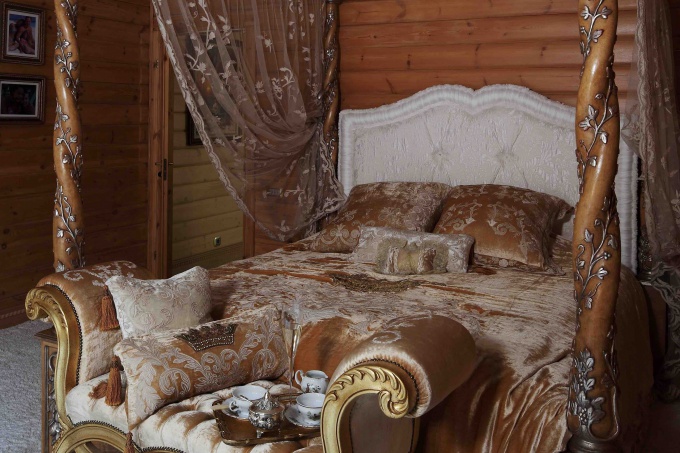 Для оформления интерьеров спален прекрасно подойдут мебельные ансамбли, выполненные в стиле рококо, барокко или в классическом стиле. Роскошный дизайн интерьера спальни в дворцовом стиле предполагает наличие предметов мебели, для которых характерны плавные линии, большие размеры, четкие формы, лакированная поверхность. Они декорируются резными элементами, золотыми или серебряными деталями. Также дизайн спальни в дворцовом стиле может иметь антикварную мебель или эксклюзивные предметы, сделанные на заказ. В качестве обивки применяется бархат и атлас. Изделия отличаются не только великолепным видом, но и являются функциональными.