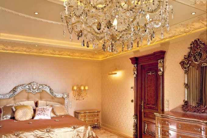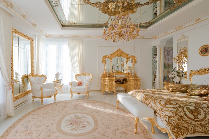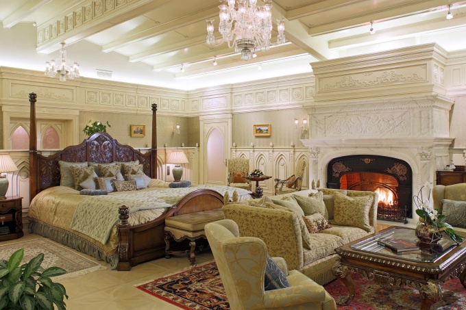 Спальня – это место, куда не часто заглядывают посторонние люди. Здесь хозяева могут сбросить с себя груз повседневных хлопот и получить новый заряд энергии. Именно поэтому дизайн спален должен дышать покоем, быть умиротворяющим. Для этих целей прекрасным вариантом станет интерьер спальни в дворцовом стиле. В этом направлении удачно сочетается функциональность, изысканная красота и безмятежность.