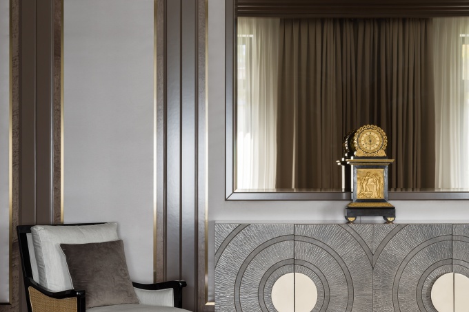 Особенность фасадов здания – исторические архитектурные приемы: арочные окна, крупный руст и «алмазная огранка» декоративных деталей. Именно они вдохновили автора на создание интерьера с необычной пластикой, деликатными рельефными орнаментами и элементами неоклассики.