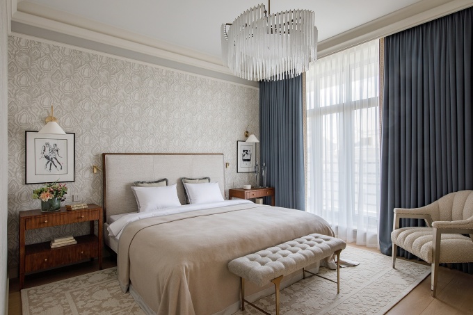Создавая интерьер спальни, архитекторы рассматривают это помещение не только с эстетической, но и с функциональной точки зрения. Одним из главных вопросов в смысле функции, становится организация спальни как помещения, в котором могут располагаться несколько зон. Одновременно архитектор учитывает в проекте и наличие смежных ванной и гардеробной. Одной из тенденций последних лет стал вариант раздельных спален, где одна является основной и парадной, а другая – более скромной и небольшой. Интерьер спальни в классическом стиле требует определенных размеров. Профессионалы проектируют спальни размером не менее 30 кв.м., светлыми, с высокими потолками, с отдельным будуаром и выходами в женскую и мужскую гардеробную со своими санузлами.
