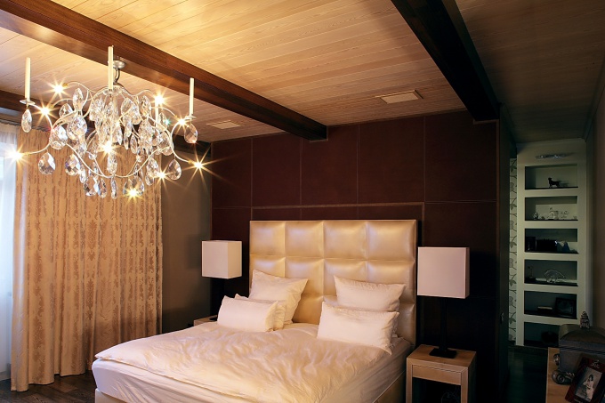 Главное, что отличает спальню – особый уют. Шторы, обои, свет – все это очень важно. Здесь вполне подойдет контурная, «затухающая» подсветка. Следует следить за устройством света, расположенного за спинкой кровати, он не должен мешать спящему, когда другой читает.