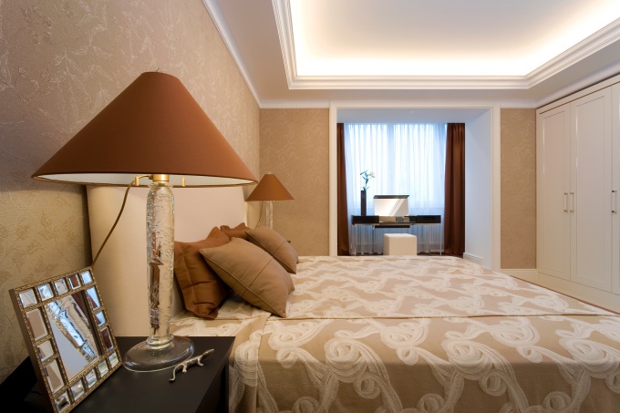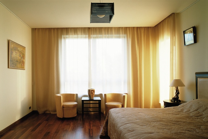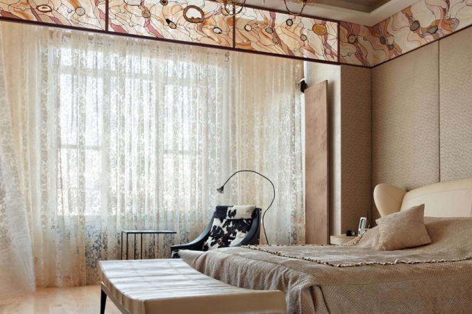 В спальне особую роль играет текстильное оформление окон. Обычно используют два вида штор. Ближние к окну – «ночные шторы». Они могут быть светонепроницаемы, тогда используют ткань black out. Можно ограничиться и плотной тканью на подкладке. У таких штор есть еще одна полезная функция – звукопоглощение.