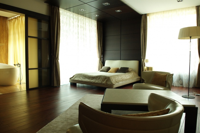 Слишком большой размер спальни может нарушить необходимую в этой зоне уединенность. Оптимальный размер спальной зоны колеблется от 25 кв.м до 40 кв.м.