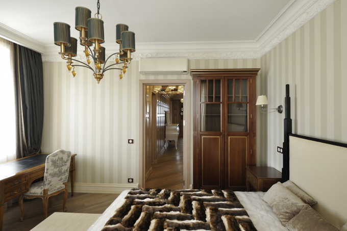 Всегда режиссирую свет: от входа включаем освещение нескольких камерных зон, у кровати выключаем. Люблю разнообразие – верхний свет, торшер, настольные лампы у кровати. Кстати, читать под ними не удобно, независимо от их высоты. Поэтому всегда устанавливаю бра над кроватью, причем вешаю его на определенной высоте – 140-150 см от пола, в зависимости от высоты спинки кровати и роста заказчика.