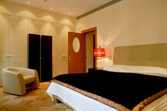 Слишком большой размер спальни может нарушить необходимую в этой зоне уединенность. Оптимальный размер спальной зоны колеблется от 25 кв.м до 40 кв.м.