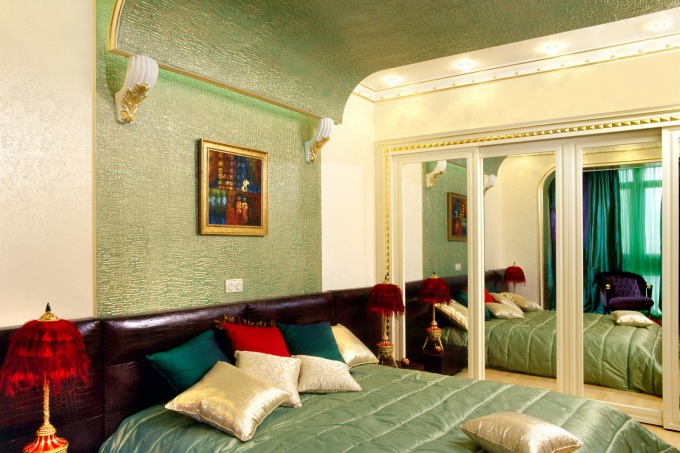 Главное, что отличает спальню – особый уют. Шторы, обои, свет – все это очень важно. Здесь вполне подойдет контурная, «затухающая» подсветка. Следует следить за устройством света, расположенного за спинкой кровати, он не должен мешать спящему, когда другой читает.