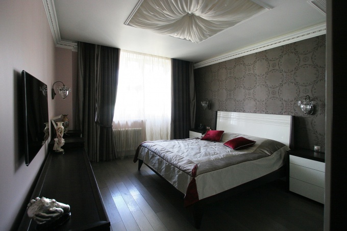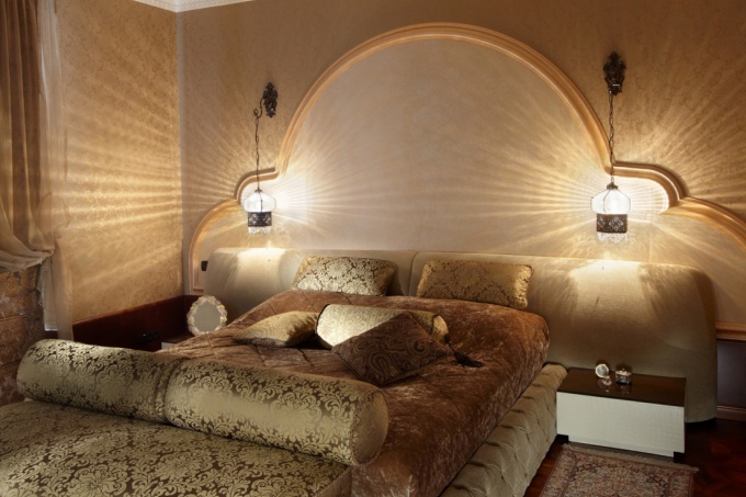 Главное, что отличает спальню – особый уют. Шторы, обои, свет – все это очень важно. Здесь вполне подойдет контурная, «затухающая» подсветка. Следует следить за устройством света, расположенного за спинкой кровати, он не должен мешать спящему, когда другой читает.