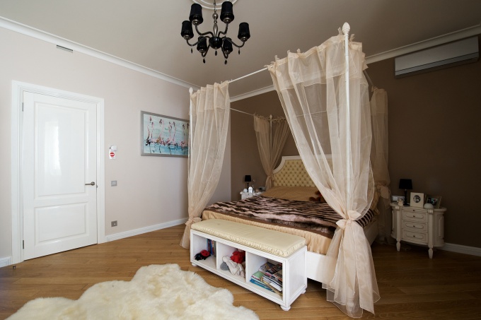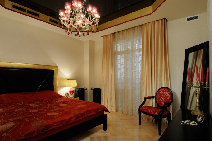 В спальне особую роль играет текстильное оформление окон. Обычно используют два вида штор. Ближние к окну – «ночные шторы». Они могут быть светонепроницаемы, тогда используют ткань black out. Можно ограничиться и плотной тканью на подкладке. У таких штор есть еще одна полезная функция – звукопоглощение.