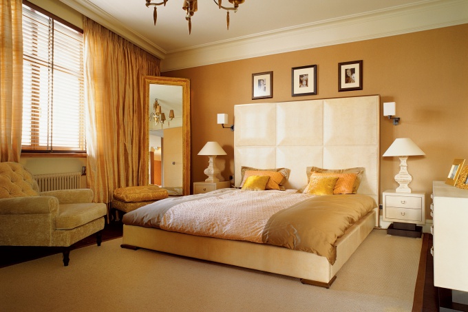 В оформлении спальни не следует применять более трех цветов. Полезно нанести несколько подходящих цветовых пятен и проследить, как цвет ведет себя при разном освещении, времени суток, погоду. В спальне как нигде мы чувствуем на себе воздействие цвета!