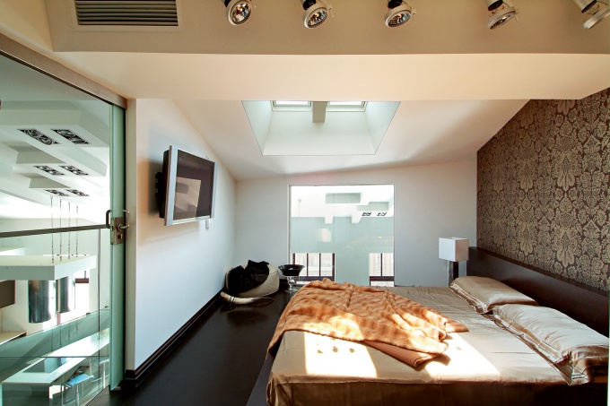 Открытая и наполненная светом квартира, расположенная на последнем этаже особняка в стиле модерн, со световым фонарем, откуда видно небо и звезды. Ее интерьер балансирует на грани хай-тека и минимализма с примесью изящного гламура.