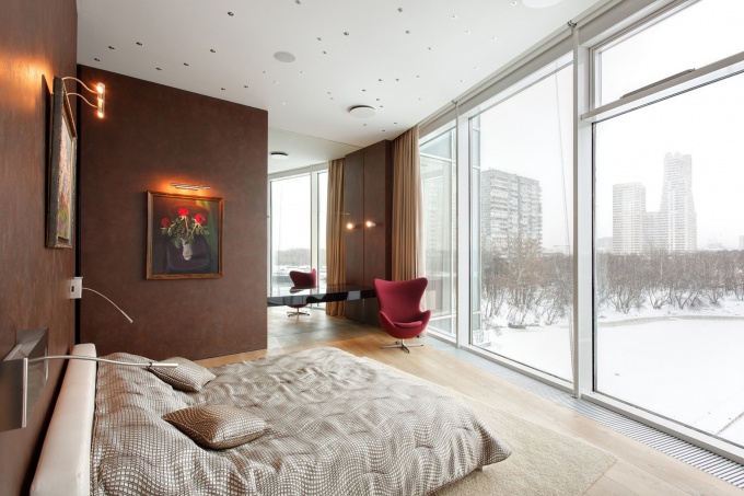 Главное, что отличает спальню – особый уют. Шторы, обои, свет – все это очень важно. Здесь вполне подойдет контурная, «затухающая» подсветка. Следует следить за устройством света, расположенного за спинкой кровати, он не должен мешать спящему, когда другой читает.