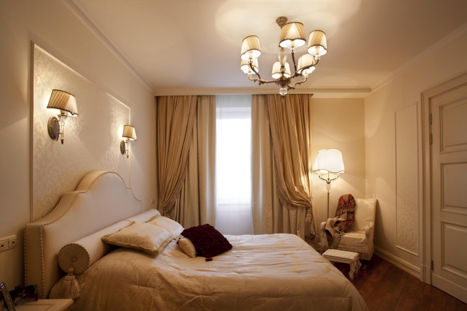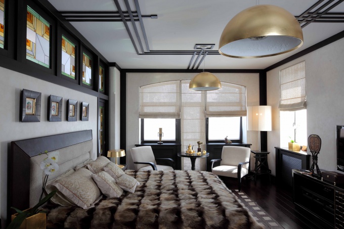 В спальне особую роль играет текстильное оформление окон. Обычно используют два вида штор. Ближние к окну – «ночные шторы». Они могут быть светонепроницаемы, тогда используют ткань black out. Можно ограничиться и плотной тканью на подкладке. У таких штор есть еще одна полезная функция – звукопоглощение.