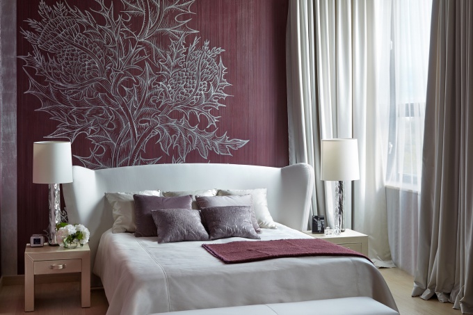 Главное, что отличает спальню – особый уют. Шторы, обои, свет – все это очень важно. Здесь вполне подойдет контурная, «затухающая» подсветка. Следует следить за устройством света, расположенного за спинкой кровати, он не должен мешать спящему, когда другой читает.